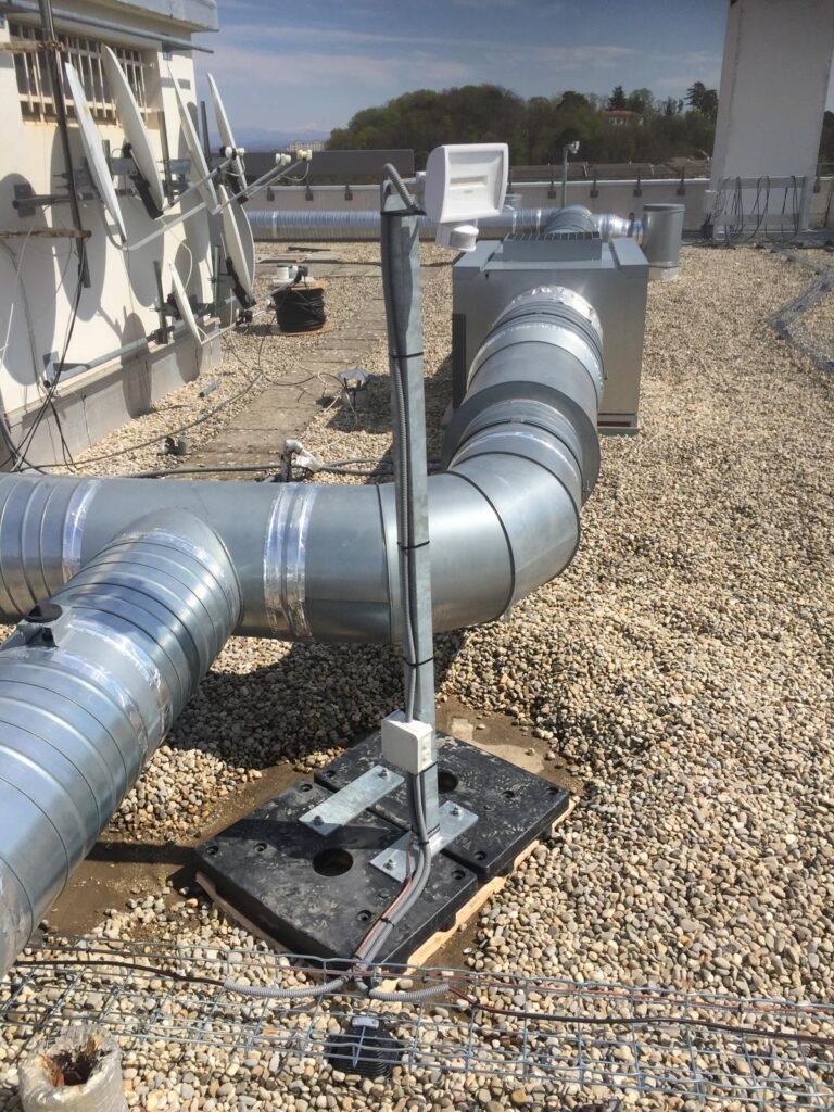 Cette installation assure une distribution électrique extérieure fiable, protégée et adaptée à un environnement en hauteur, tout en garantissant un éclairage automatisé et efficace pour les zones techniques du bâtiment.