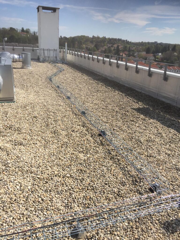 Installation d’un chemin de câbles et d’un éclairage sur détecteur sur un toit-terrasse à Meyzieu