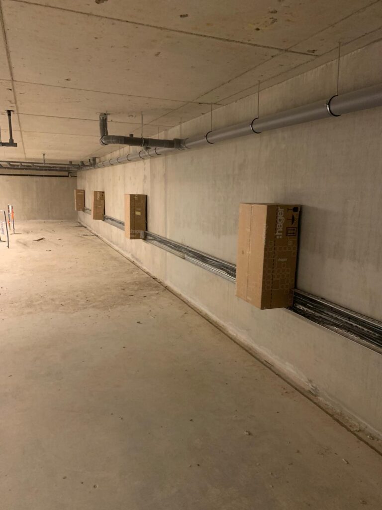 Chantier réalisé dans le quartier de Gerland (Lyon 7), au sein du sous-sol d’un hôtel nécessitant l’installation d’une borne de recharge pour véhicule électrique.
